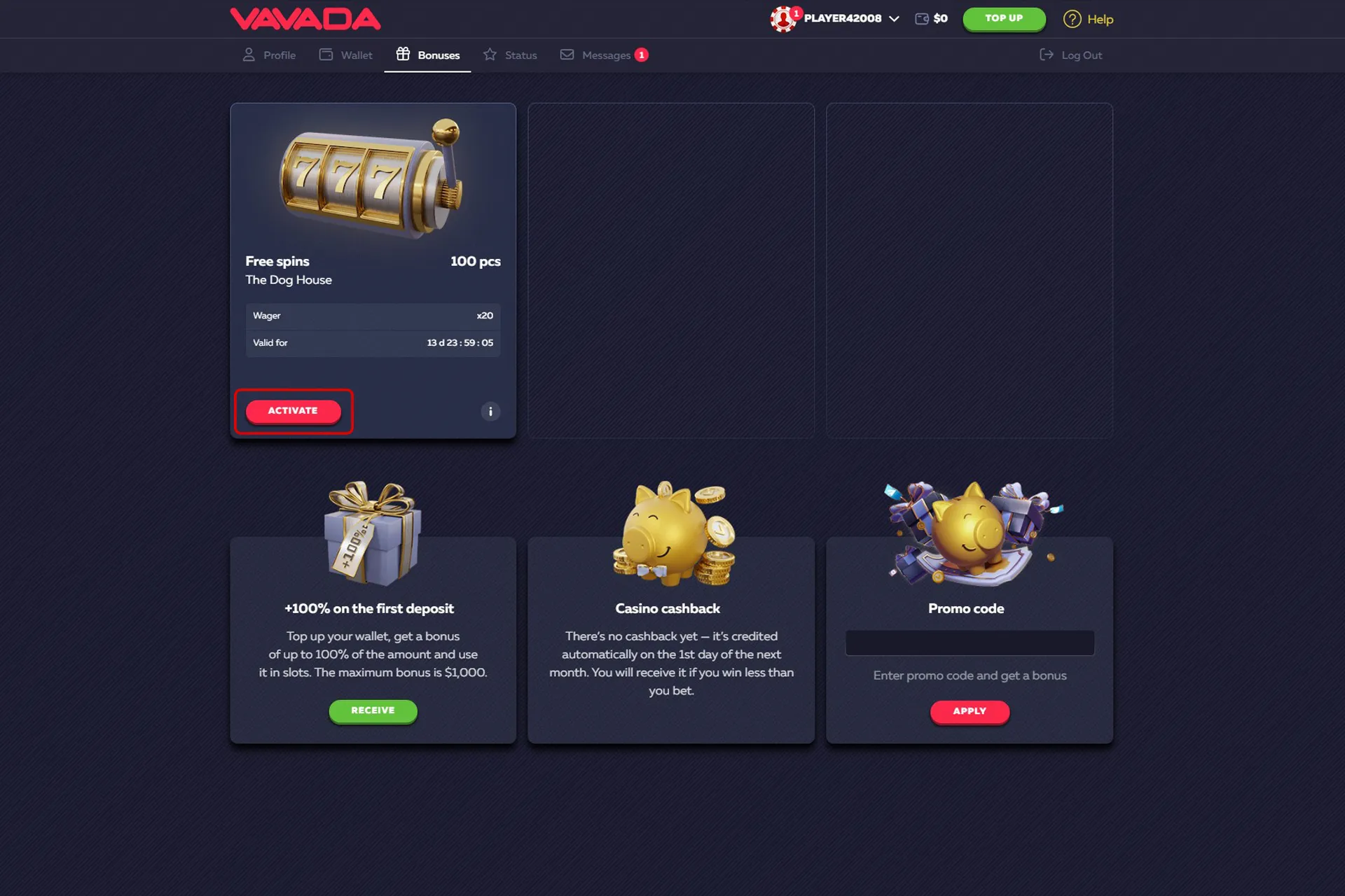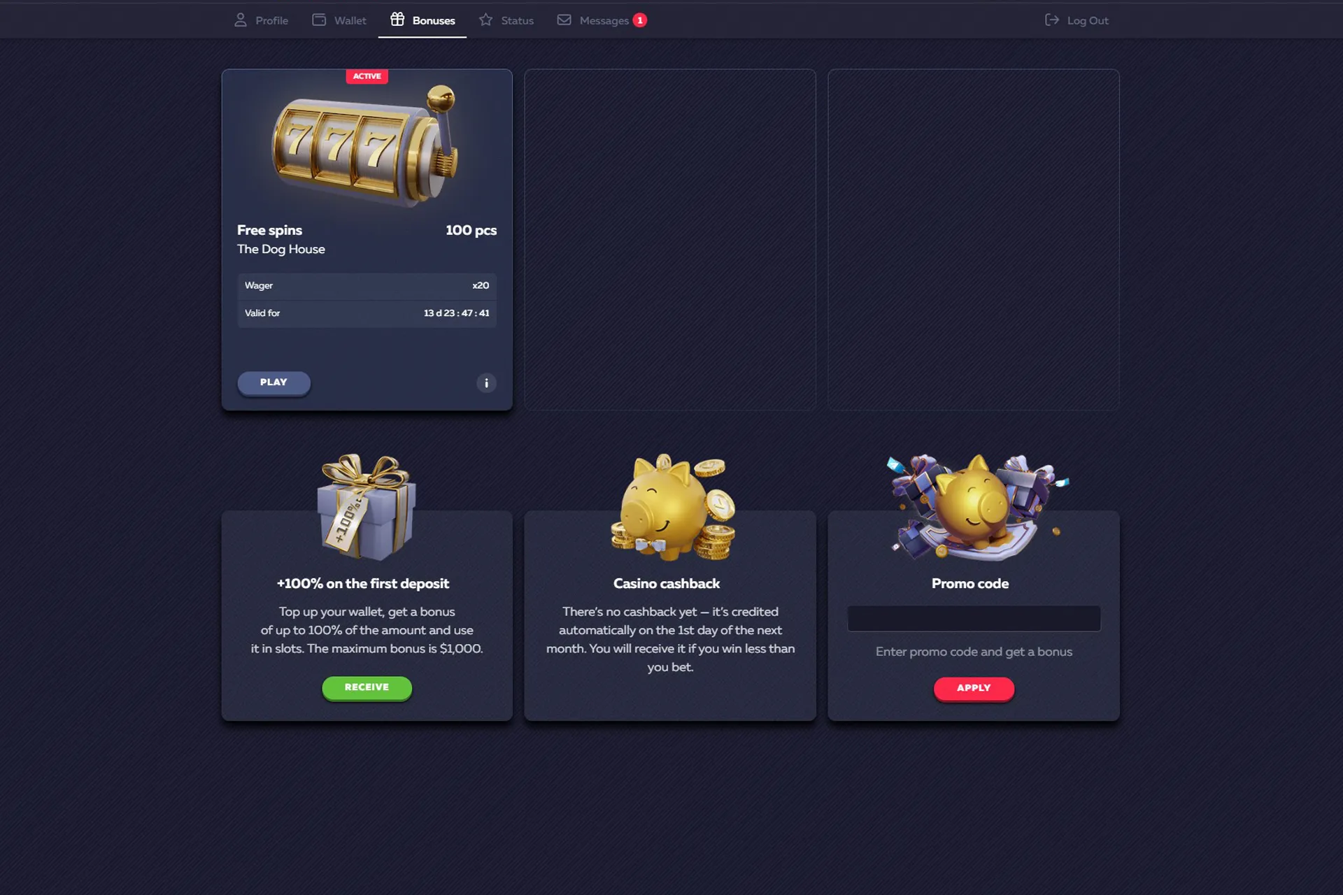 Geben Sie GET100 im Promo-Code-Feld ein, um 100 Freispiele fuer The Dog House zu erhalten - keine Einzahlung erforderlich. Schliessen Sie dann die Registrierung ab.